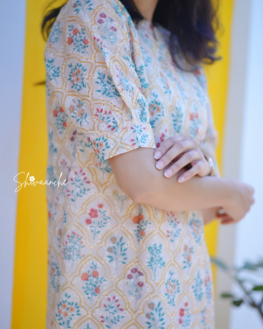Tropical Beige Classic Dress – Premium Mul Mul Cotton for Comfort & Style
