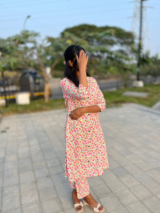 Blush Floral Coord Set - Stylish A-Line Linen Outfit