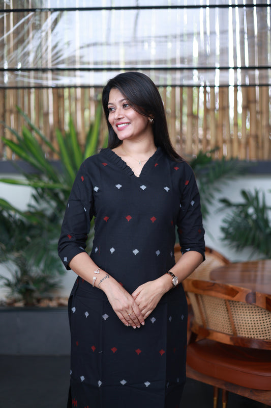Handwoven Jamdani Co-Ord Set in Black