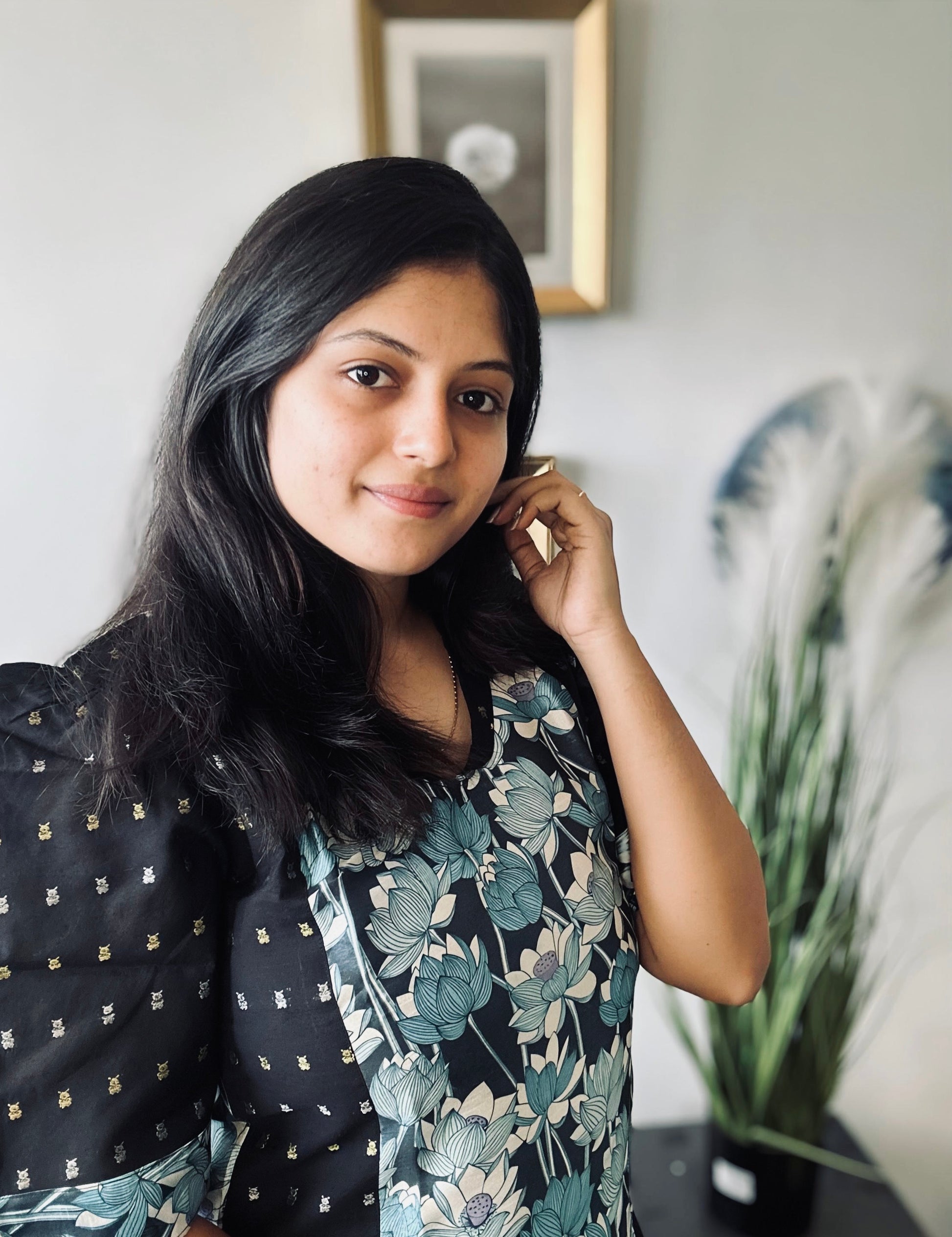 Pichwai lotus print in black combined with the weaved Butti raw silk fabric in the Kurti is definitely a go to ethnic wear for small ocassions and temple visits. Adding to its beauty it comes with a same raw silk Buttis pant will definitely makes heads turn for you.