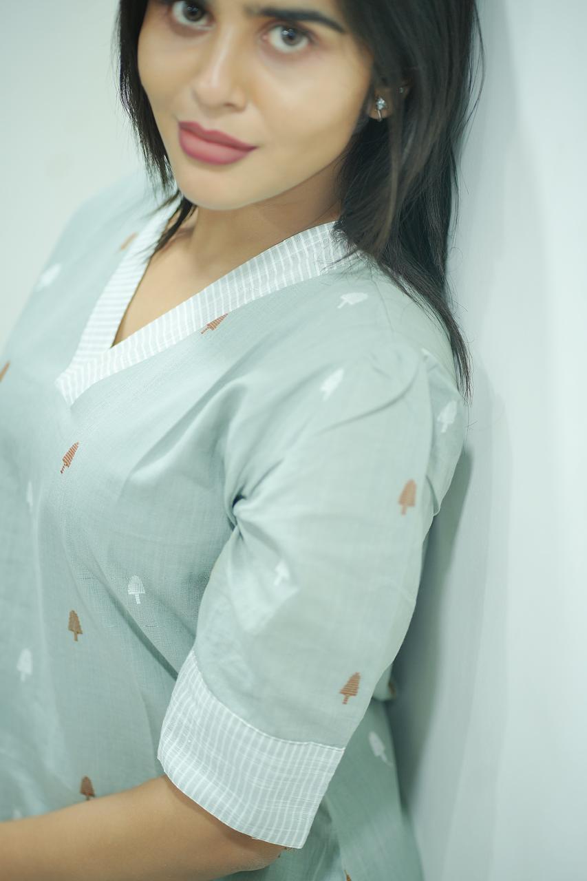 Look ethnic yet modern with our Grey Glam timeless handloom set. The neutral tone flatters all skin tones and is perfect for stylish everyday wear.