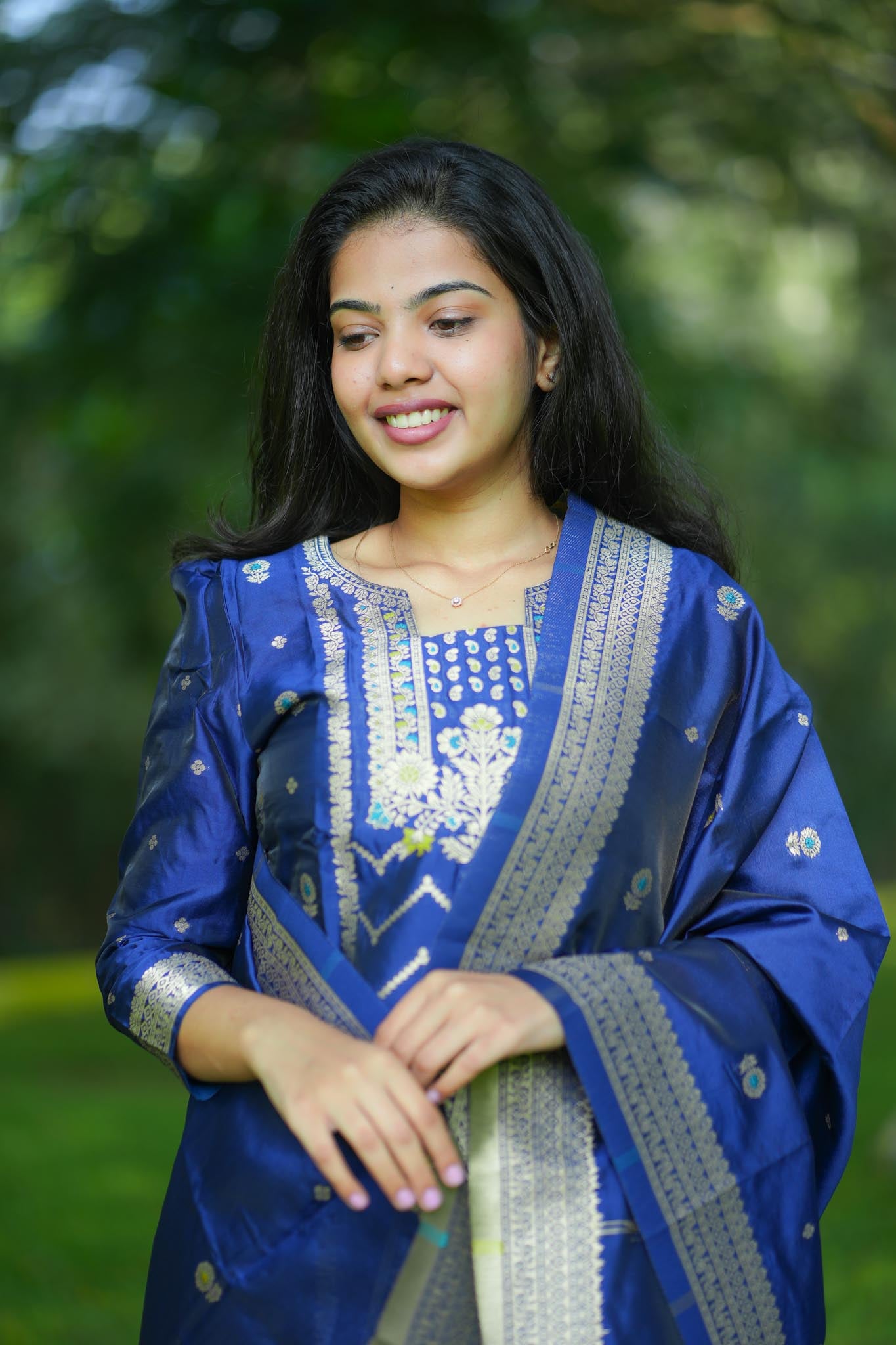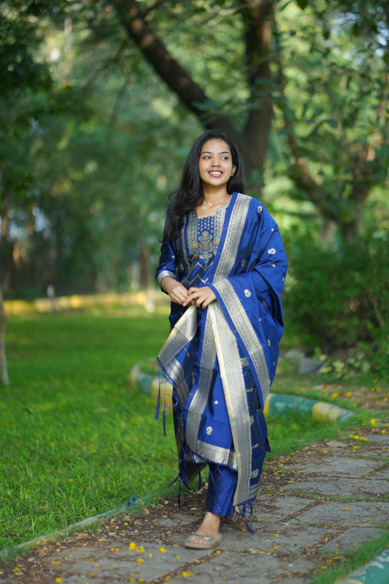 INK Banarasi Suit Set – Royal Blue & Gold Zari Elegance