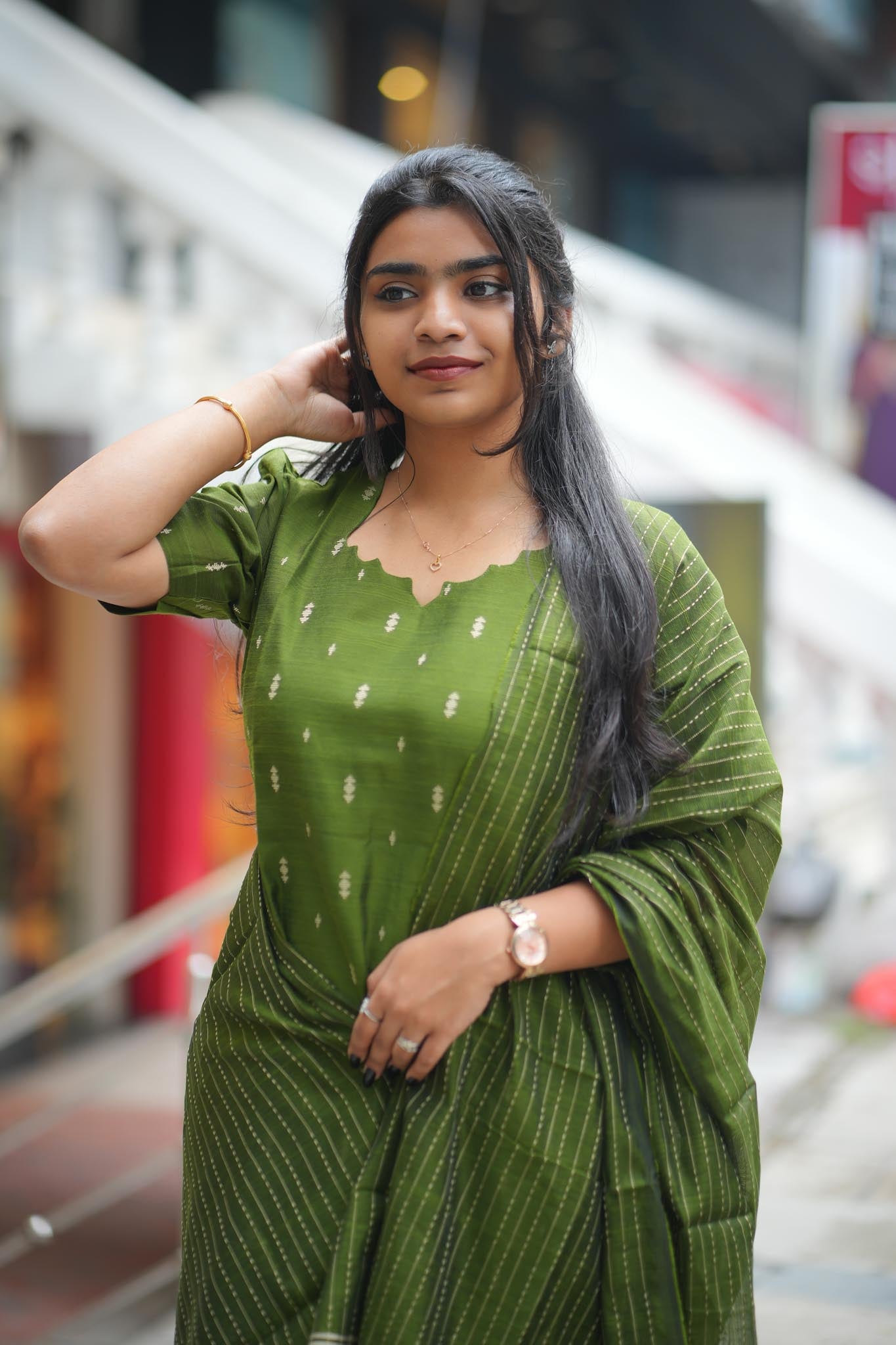 The refreshing olive green hue brings a calm yet luxurious feel, perfectly balanced with minimalist detailing for a polished and stylish look. Fully lined for comfort and structure, this kurti, pant, and dupatta set is ideal for festive occasions, elegant gatherings, office celebrations, and special moments.