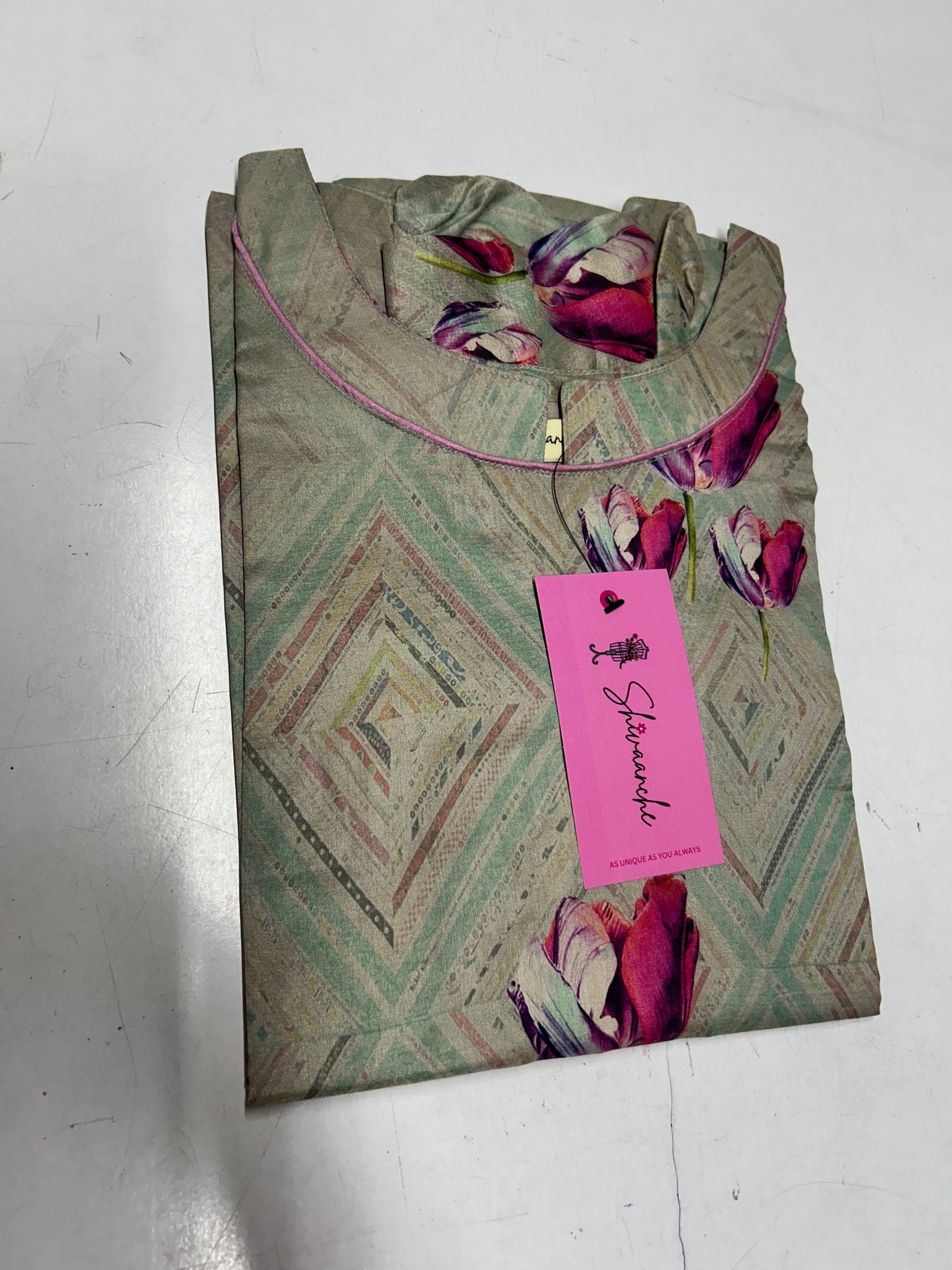 Diamond Kurti is tussar silk straight cut Kurti with lining and neck pattern. To style ethnic as well as chic this Kurti is a blind choice. Style it with a straight silk base pant or a shimmer legging ankle fits will give the desired look.